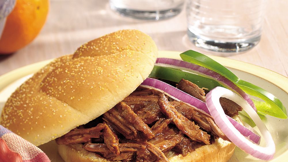Slow-cooker root beer barbecue beef sandwiches recipe from